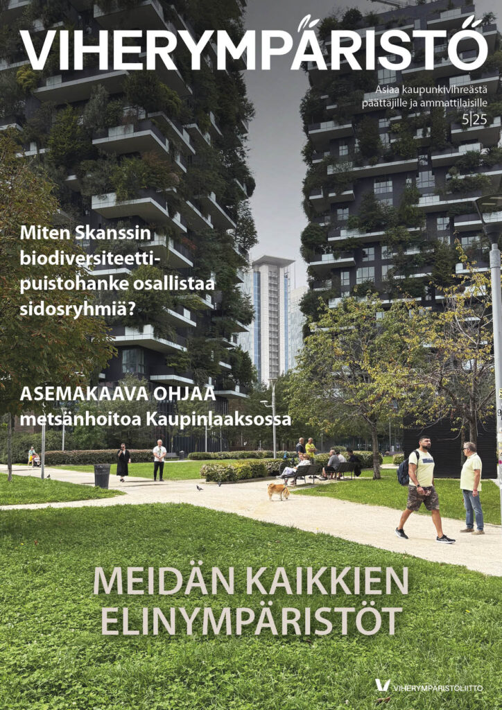 Viherympäristö-lehden 5/2025 teemana ovat elinympäristöt, jotka toimivat myös ihmisten asuinympäristöinä. Tiivistyvissä kaupungeissa on elintärkeää huomioida lukuisten lajien mahdollisuudet asustaa samoilla alueilla. Millaisilla ratkaisuilla lajien erilaisia tarpeita voidaan sovittaa yhteen? Opimme, miten Turun Halisissa ja Jyrkkälässä on luotu asukkaille osallistumisen mahdollisuuksia oman alueen kehittämiseksi luonnonläheisemmäksi. Vierailemme Tampereen Kaupinlaaksossa, jonka kaavoituksessa piti huomioida liito-oravan, viitasammakon ja lahokaviosammalen elinympäristöt. Inspiraatiota haemme Liettuasta, Vilnan raikkaan moderneista viherrakentamisen ratkaisuista. Ja paljon muuta!