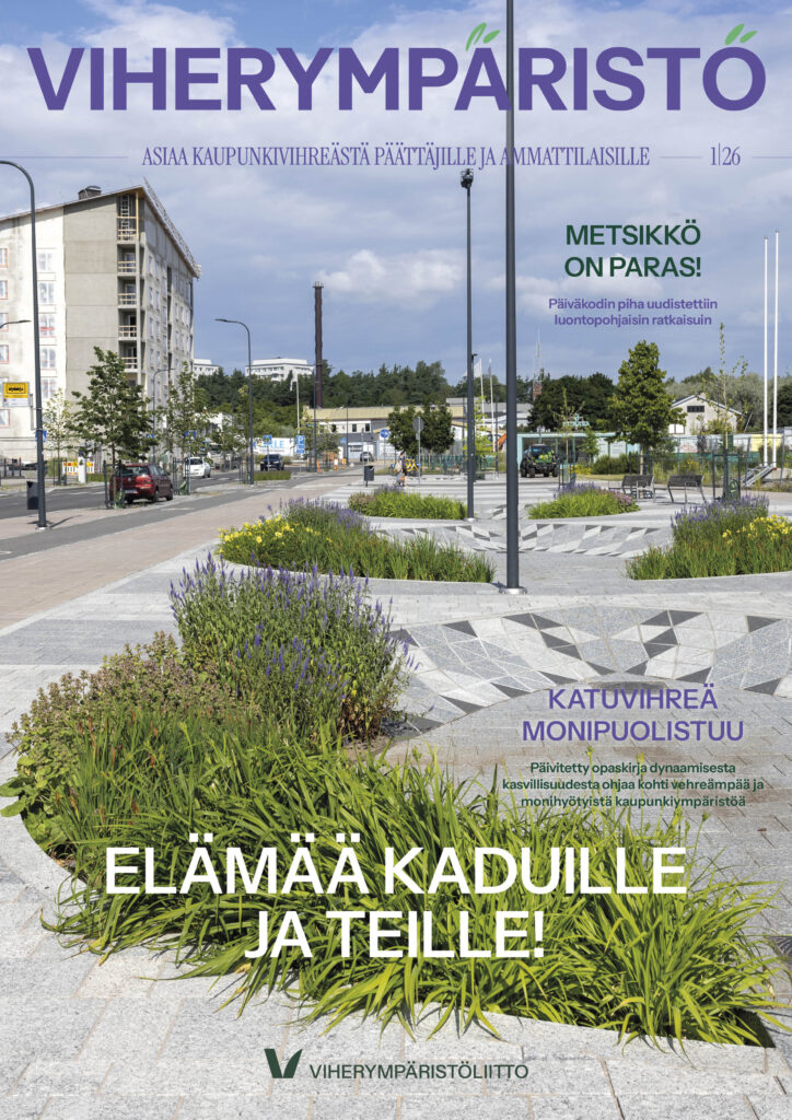 Vihreä kirja on Viherympäristö-lehden vuosittainen erikoisjulkaisu, joka tarjoaa tuoreita näkökulmia ja tietoa niin viheralan ammattilaisille kuin heidän sidostyhmilleen sekä yhteiskunnan päätöksenteosta vastaaville päättäjille. Esittelemme onnistuneita ratkaisuja, luomme verkostoja ja tavoittelemme yhdessä yhä parempaa rakennettua ympäristöä, joka tuo hyvinvointia kaikille. Nyt luettavissa on vuoden 2026 Vihreä kirja, jossa pääteemana on Viherympäristöliiton ja sen kumppaneiden Hyvinvointi rakentuu elävässä ympäristössä -kampanja. Miten kampanjan teemat koskettavat sinua? Haluaisitko osallistua tärkeiden viestien eteenpäin viemiseen? Tutustu ja tule mukaan!