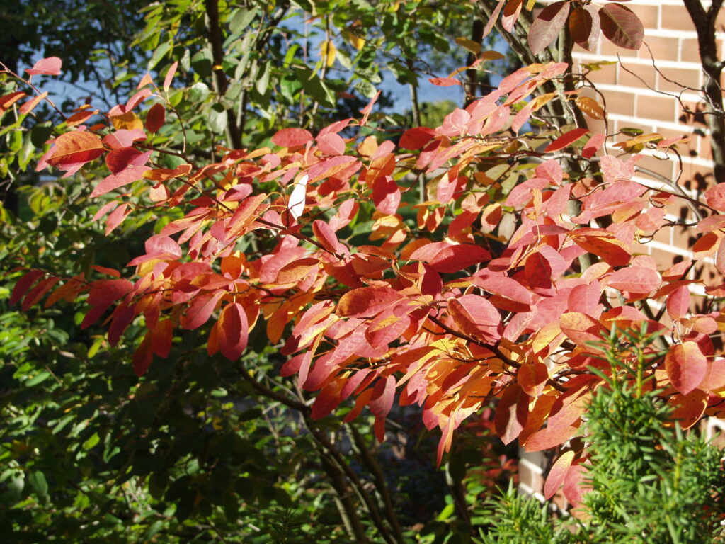 - marjatuomipihlaja ’Obelisk’ (Amelanchier alnifolia ’Obelisk’, pikkupuu)