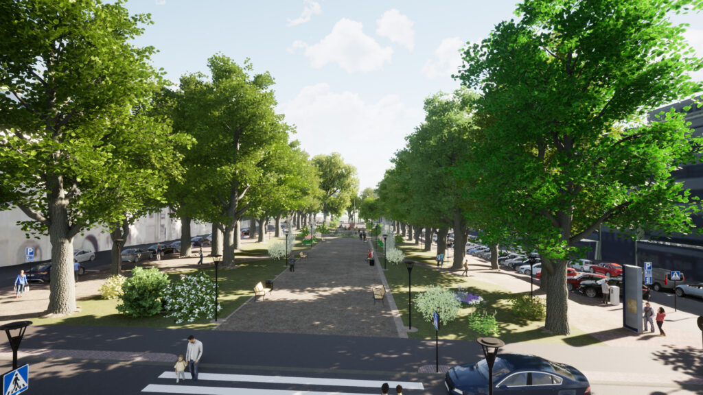 Kaupungintalonpuiston keskeisiä elementtejä ovat puukujanteet ja niiden välinen pääpromenadi, jolta avautuu pitkä näkymä molempiin suuntiin. Restauroitu puisto ja Jugend-tyylinen kaupungintalo muodostavat arvokkaan kohtaamispaikan.