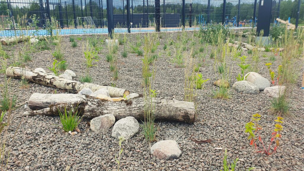 Suunnittelussa ja rakentamisessa on pyritty huomioimaan kestävän ympäristörakentamisen periaatteita useilla tavoilla. Ulkoilureitillä pyrittiin säästämään ympäröivää metsänpohjaa ja puustoa huomioimalla alueella jo ollutta polkuverkostoa. Myös taukopaikat rakennettiin paikoille, joissa nuotiopaikkoja oli jo ennestään, tai maasto muutoin avointa ja kulunutta. Lammen etelärannan pelikentät rakennettiin vanhojen pysäköintialueiden paikalle. Lounaisrannan rakentaminen sijoitettiin vanhojen loma-asuntojen tonteille. Samalla poistettiin vieraslajeja. Rannan alueella monimuotoisuutta lisättiin dynaamisilla istutuksilla sekä uusilla puu- ja pensasistutuksilla. Eroosion torjumiseen käytettiin niittysiemenmattoa. Myös uusia niittykylvöjä tehtiin lounaisrannan puistoon. Istutusalueilla on käytetty paikalta saatuja puunrunkoja sekä luonnonkiviä.