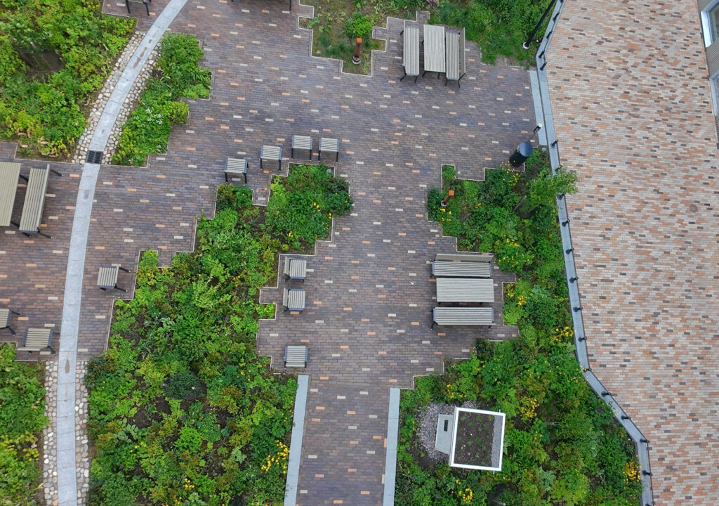 Katualueilla istutukset ovat tyypillisesti kapeita ja nauhamaisia. Perinteinen ratkaisu, puut ja kiveys tai nurmikko, jättää katseen korkeuden asfaltinharmaaksi. Yksilajiset ja tasakorkeat istutukset ovat laiha lohtu kivikaupungissa. Dynaamisen kasvillisuuden kerroksellisuus tuo katualueiden vehreyden paremmin eri tarkastelutasoille: vihreää näkyy niin bussin ikkunasta kuin lastenrattaistakin.