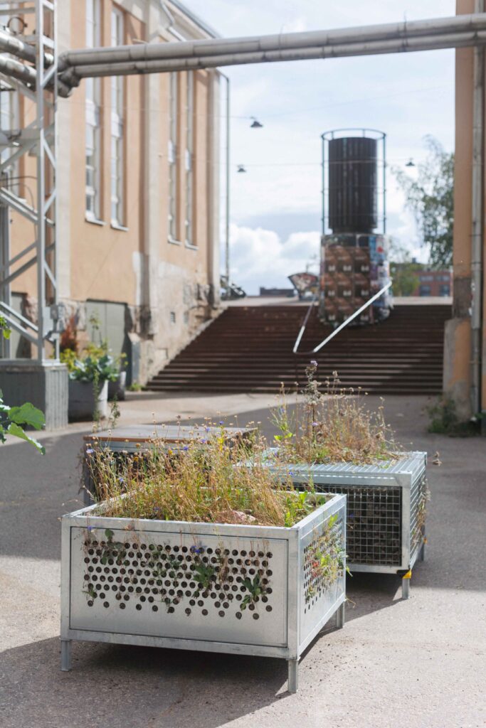 Samalla luontopohjaiset ratkaisut voivat olla myös edistämässä kiertotaloutta esimerkiksi osana työmaita. Nomaji maisema-arkkitehtien ja Abau Designin Luontoasema-kokeilussa kasvukaudella 2024 testattiin rakennetta, jossa rakennustyömaiden pintamaita voidaan säilöä ja hyödyntää uudelleen suoraan kohteessa säilyttäen alueen luontoarvoja. Yleistyessään ratkaisu vähentäisi työmaiden rekkarallia, lisäisi viihtyisyyttä ja vaimentaisi ääniä. Suvilahdessa toteutetussa kokeilussa moduulit muodostivat väliaikaisia seinäkkeitä ja istuskelurakenteita, jotka toivat luontoa betoniselle aukiolle.