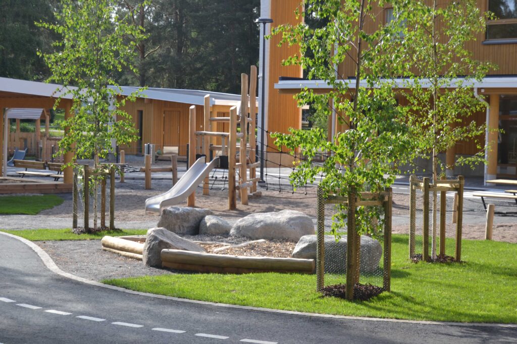 Tavoitteena oli saada tontille mahdollisimman paljon luonnonmateriaaleja, kuten puustoa tai luonnonnurmea. Tontin erityispiirteenä on leikkipihan pohjoisreunan puustoalue, joka on merkitty asemakaavassa sä-alueeksi. Sä-merkitty alue tarkoittaa ”alueen osaa, jonka nykyinen puusto, kivikko ja polveilevat maastonmuodot tulee säilyttää. Jos yksittäinen puu joudutaan alueelta kaatamaan, tulee alueelle istuttaa korvaava kookas puuntaimi, kuten koivun tai männyn taimi. Koivun rungon ympärysmitan tulee olla vähintään 14–16 cm. Männyn taimen tulee olla korkeudeltaan vähintään 100–125 cm.”