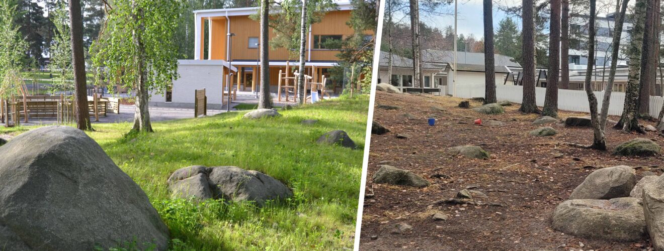 säilyttämällä vanhaa. Luontopohjaisten ratkaisujen toteutuminen voidaan varmistaa jo asemakaavoitusvaiheessa. Lohikosken uuden päiväkodin piha on Jyväskylän kaupungin Tilapalvelun pilottihanke, jossa kiinnitettiin erityishuomiota luonnonmateriaaleihin sekä nykyisen kasvillisuuden säilyttämiseen.
