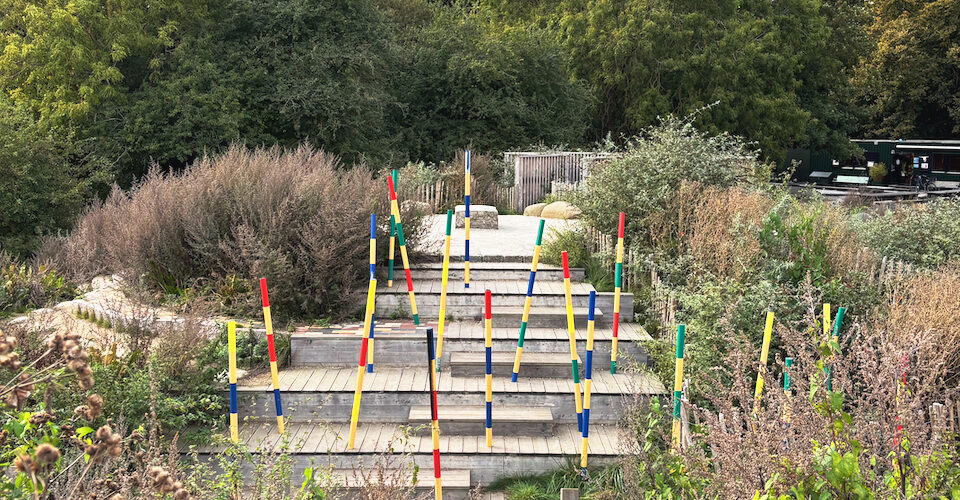 Kuva: Skolehaven Islands Brygge Kööpenhaminassa on yksi Luontopohjaisuus leikkiympäristöissä -julkaisun esimerkkikohteista. Materiaalien ja kasvillisuuden yhteisvaikutuksesta syntyy kokonaisvaltainen, omaleimainen ja leikittävä ympäristö. Kuvan on ottanut Sarianna Salminen.