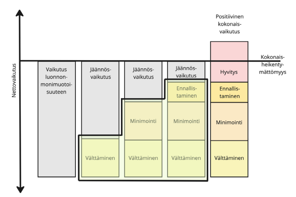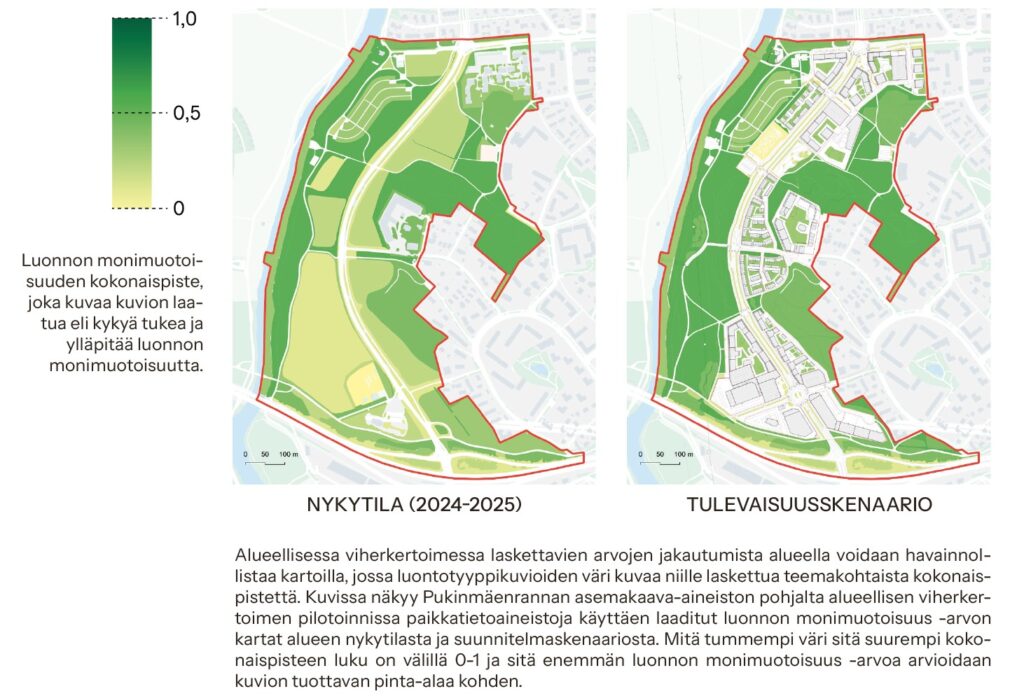 Kaupunkiluonnon monimuotoisuus haluttiin menetelmäkehityksessä ottaa mukaan laskentaan selkeämmin omana osa-alueenaan. Hankkeessa tunnistettiin, että ottamalla luontotyypit laskennan perustaksi tämä onnistuu. Samalla lisättiin menetelmän tietoperusteisuutta, systemaattisuutta ja tulosten vertailtavuutta, ja pystyttiin linkittämään alueellinen viherkerroin -laskenta ekologisen kompensaation laskentamalleihin. Tämä taas edelleen mahdollistaa lievennyshierarkian ja kokonaisheikentymättömyyden vahvemman käyttöönoton osana maankäytön suunnittelua.